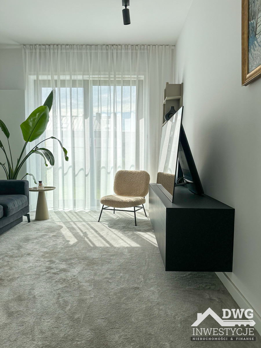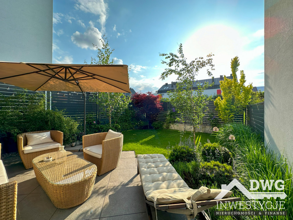 Do apartamentu przynależy również ogródek o powierzchni 50m2, o którego utrzymanie w pięknej formie tak jak i roślinność na tarasie dba systemem nawadniającym wyczuwający wilgotność podłoża.