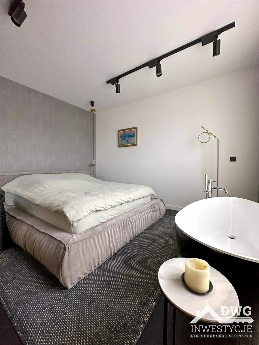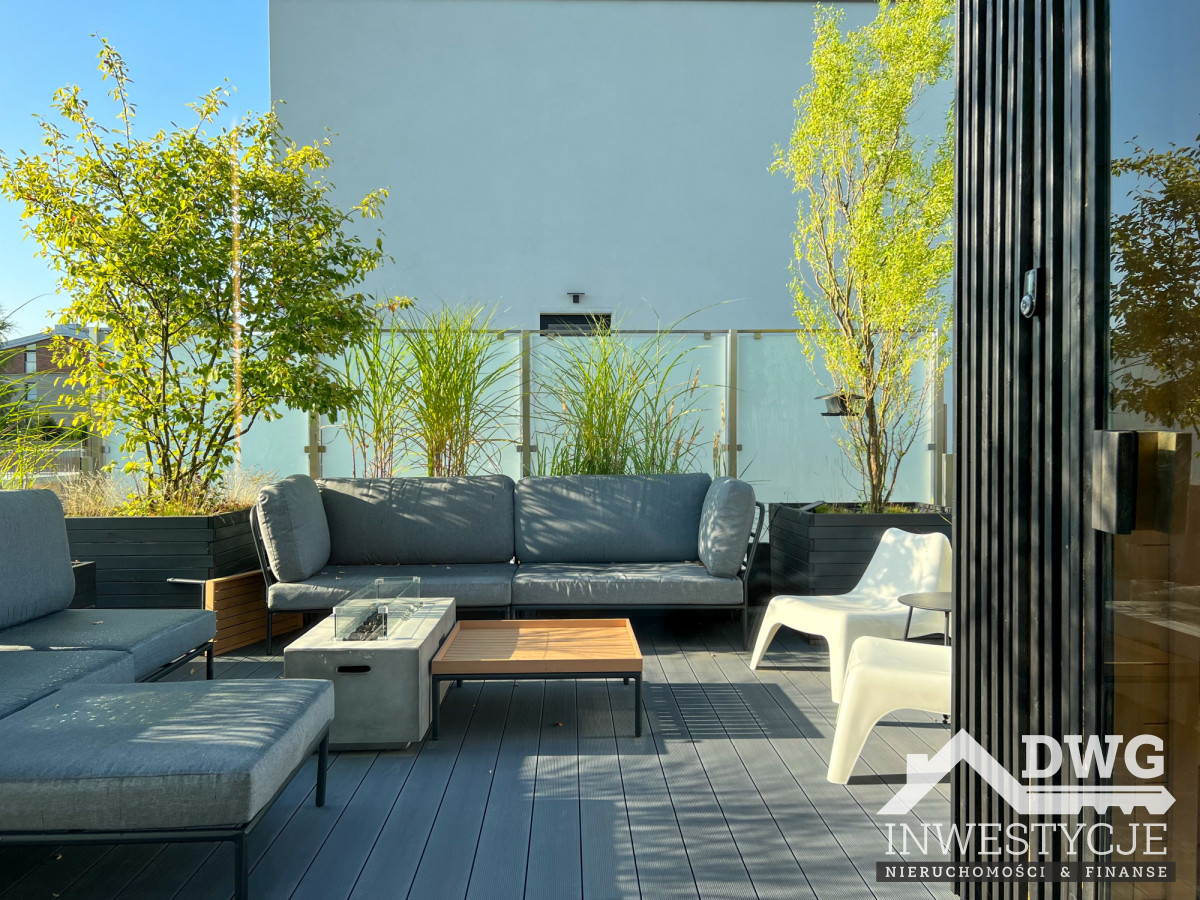 Taras o powierzchni 36m2 na którym roślinność i palenisko tworzą relaksującą scenerię to świetnie miejsce do wypoczynku. Ponad to na tarasie znajduje się sauna, która podobnie jak wszystkie pozostałe systemy zastosowane w apartamencie jest sterowana za pomocom aplikacji. Dach apartamentu należący do wyłącznego użytku, może zostać zaaranżowany na drugi widokowy taras o powierzchni 70m2. Apartament jest tani w utrzymaniu dzięki braku czynszu do wspólnoty!