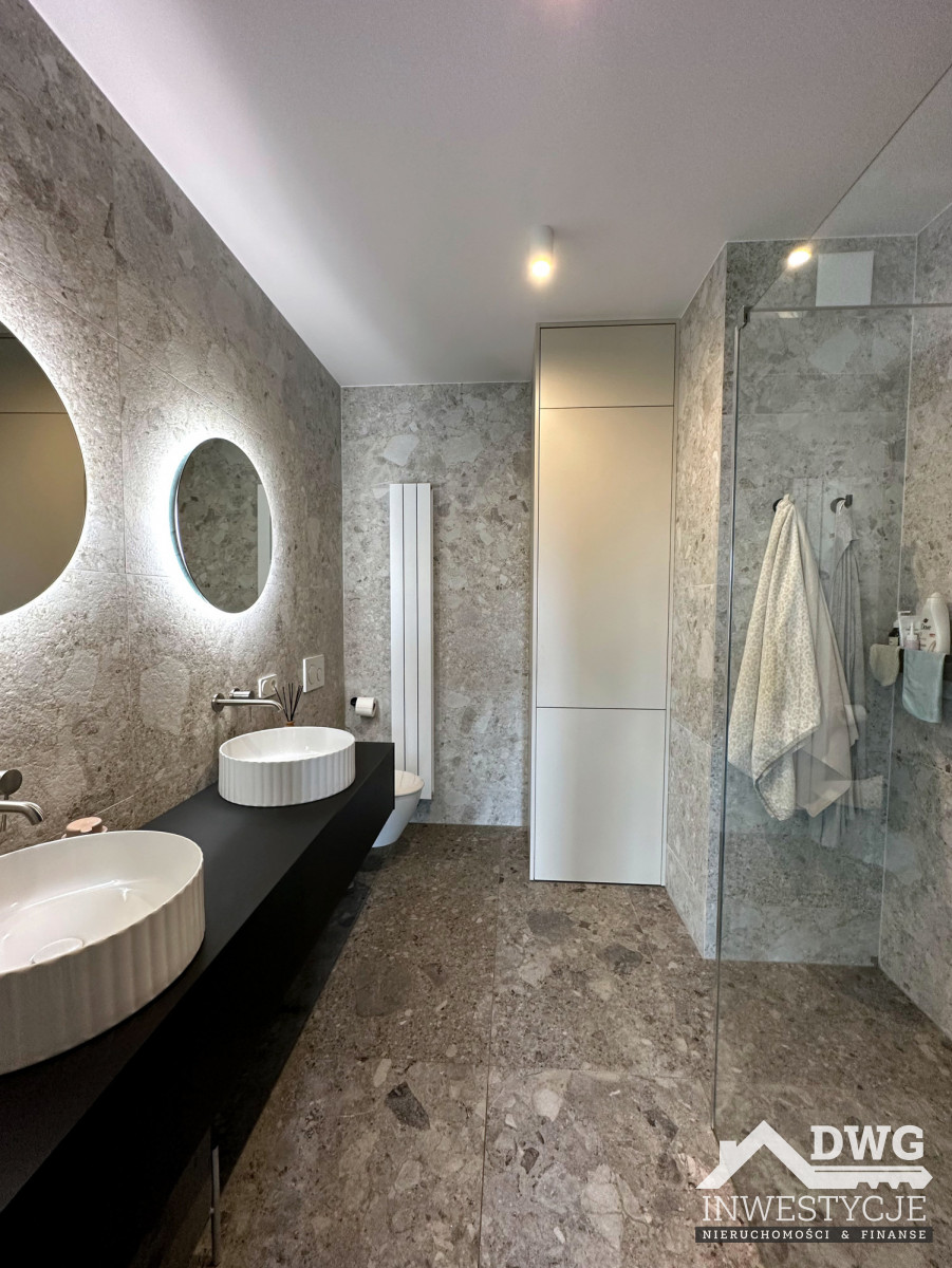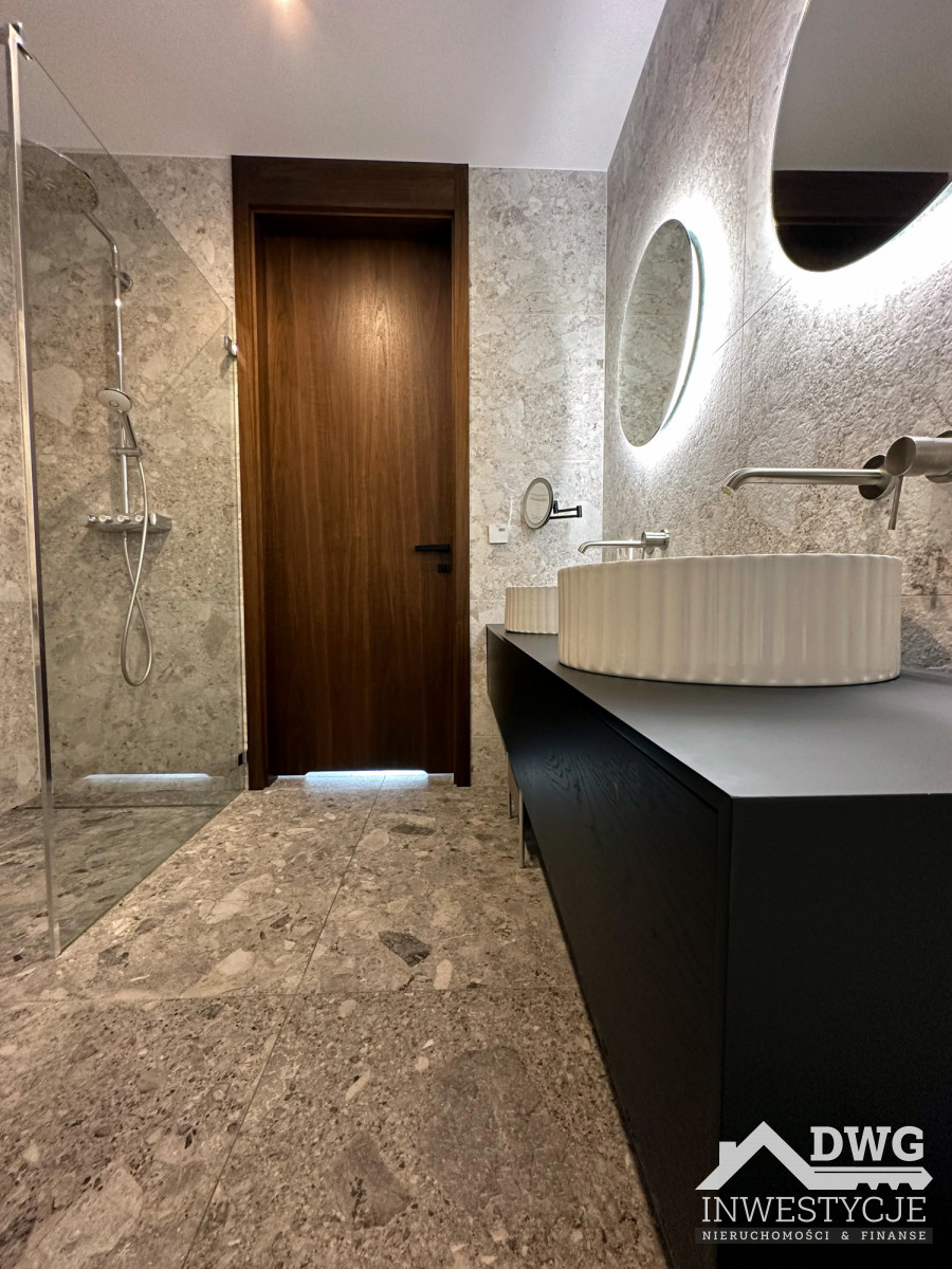 W wykończeniu wykorzystano włoski marmur, drewno dębowe, płytki Fioranese, orzech włoski. Wszystkie meble zostały wykonane na wymiar. Apartament ogrzewany jest nowoczesnym piecem gazowym który zasila ogrzewanie podłogowe zainstalowane na całej powierzchni za wyjątkiem sypialni w których zdecydowano się na wysokiej klasy stylowe grzejniki marki Vasco. Odpowiednią temperaturę pozwala utrzymywać klimatyzacja a o czyste powietrze dba rekuperacja. Ściany oddzielające apartament od sąsiadów zostały dodatkowo wygłuszone od wewnątrz dla pełnej prywatności.