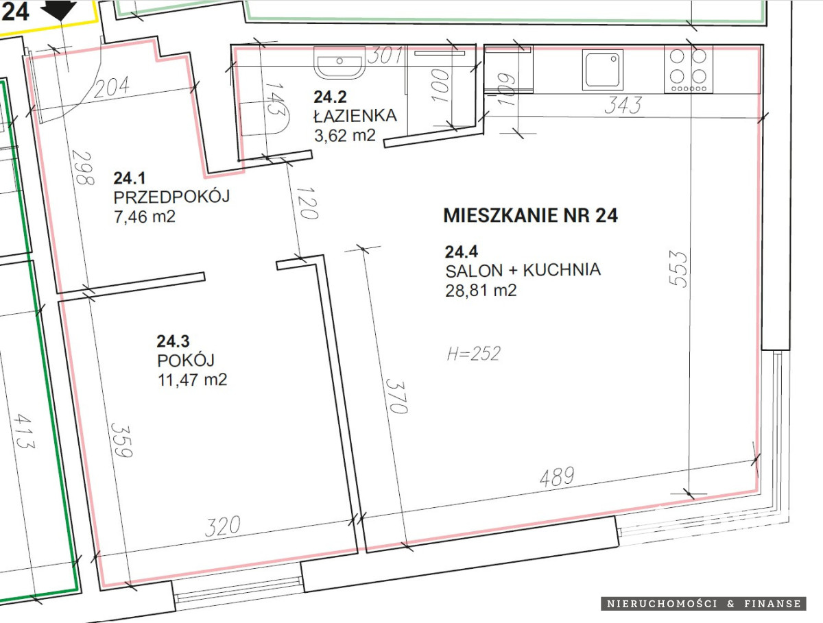 Mieszkanie składa się z jasnego salonu z narożnym, panoramicznym oknem otwartą kuchnią pozwalającej powierzchnią na wydzielenie części jadalnianej oraz przestronnej sypialni i łazienki. W przedpokoju natomiast jest wystarczająco dużo miejsca żeby zabudować szafę ale nie ciągnie się on przez całe mieszkanie jak często zdarza się to w kamienicach co oczywiście jest zawsze ogromną stratą użytkowego metrażu mieszkania