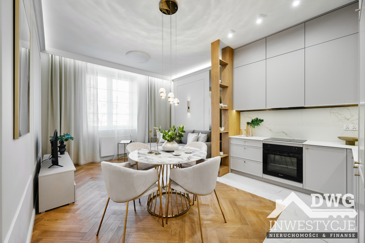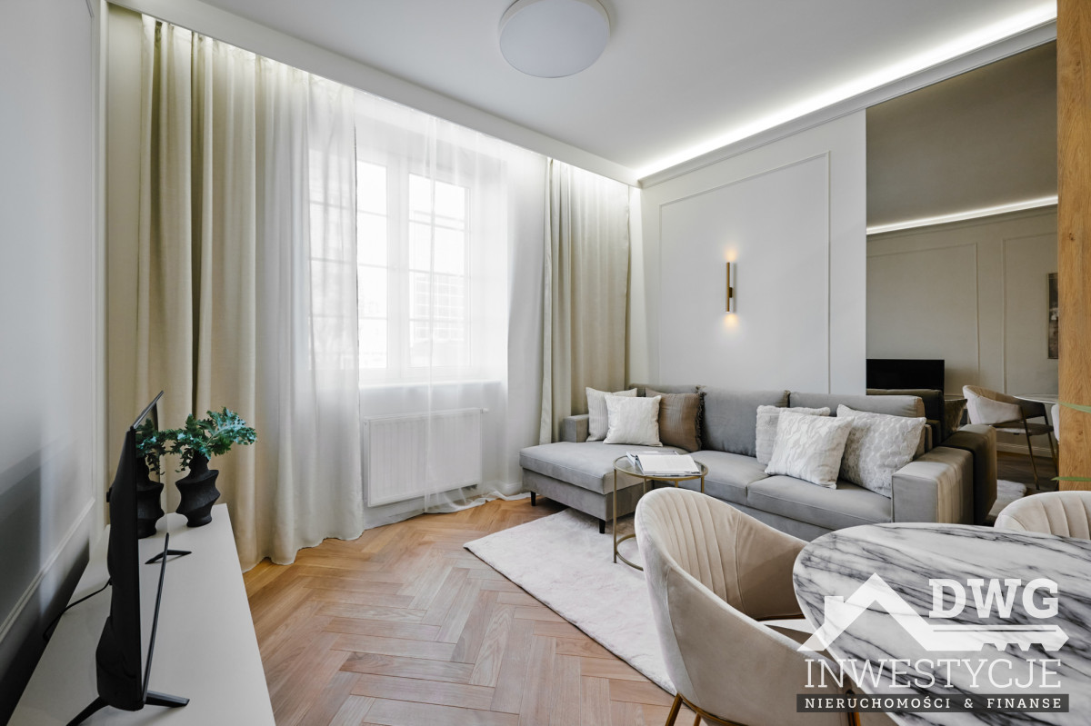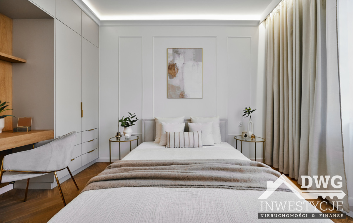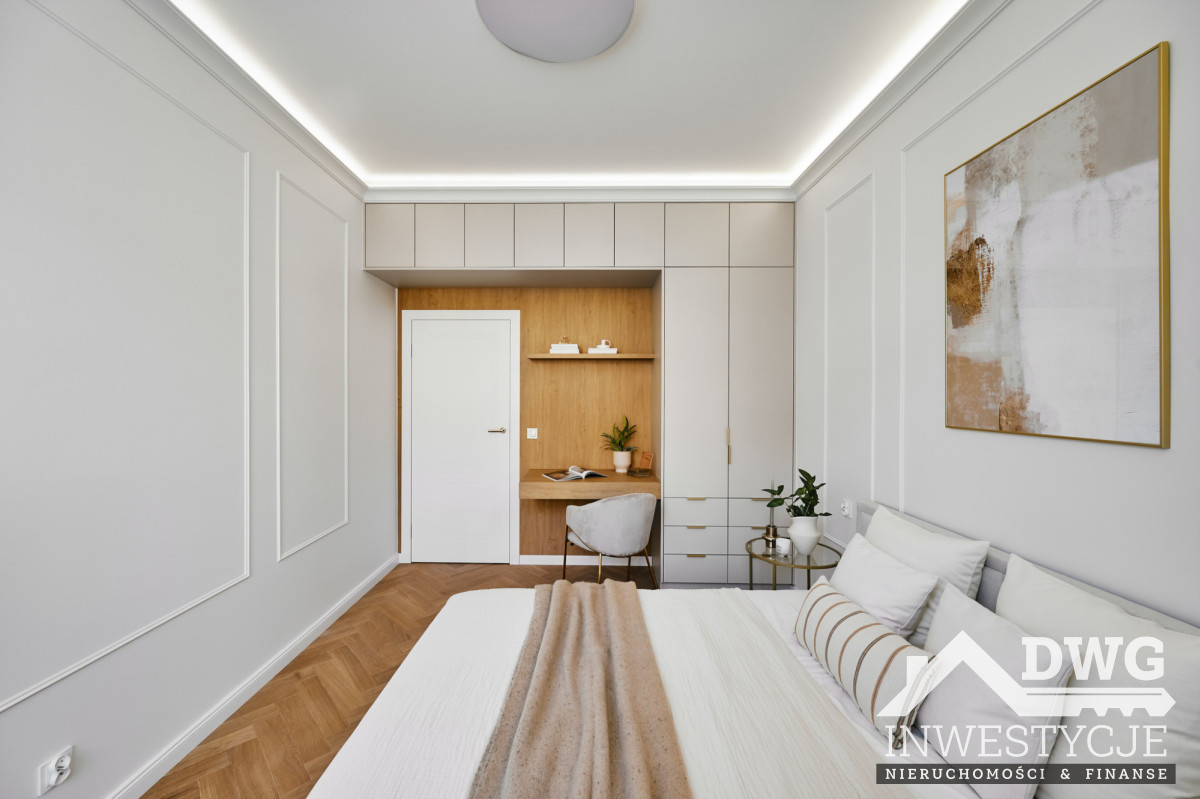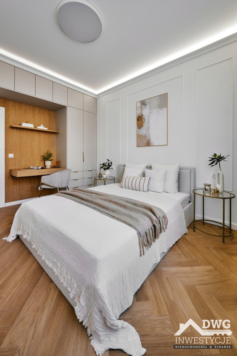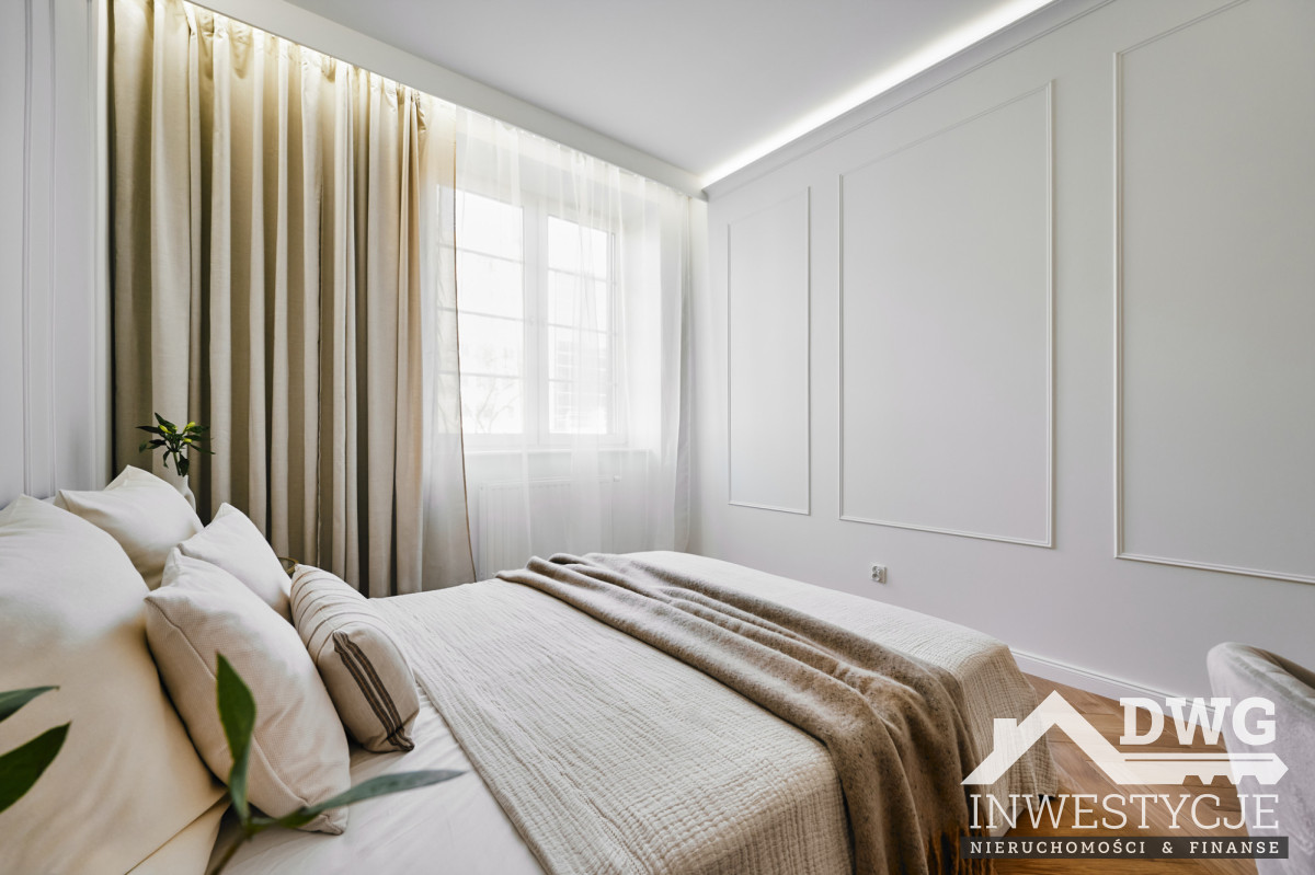 Wysokie wnętrza, dębowy parkiet, stolarka robiona na zamówienie, pełne wyposażenie AGD oraz dopracowane detale (sztukateria, oświetlenie, elektryczne karnisze) sprawiają, że mieszkanie idealnie trafia w oczekiwania rynku najmu długoterminowego klasy wyższej oraz bardzo dobrze sprawdzi się również w najmie średnioterminowym czy korporacyjnym.