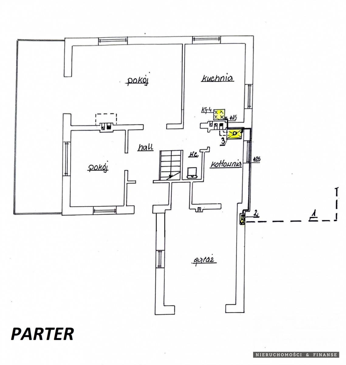 Parter: - przedpokój - salon z aneksem kuchennym - pokój (obecnie gabinet) - toaleta - pomieszczenie gospodarcze